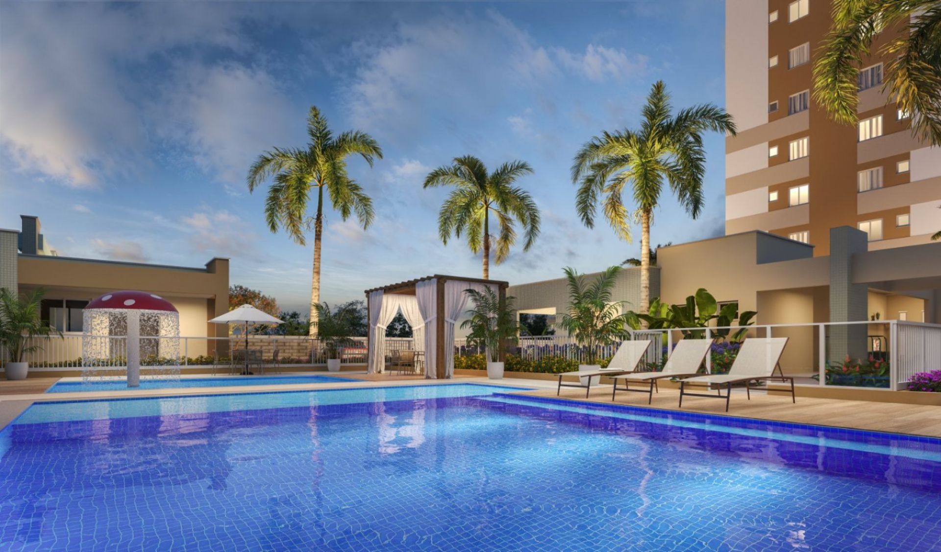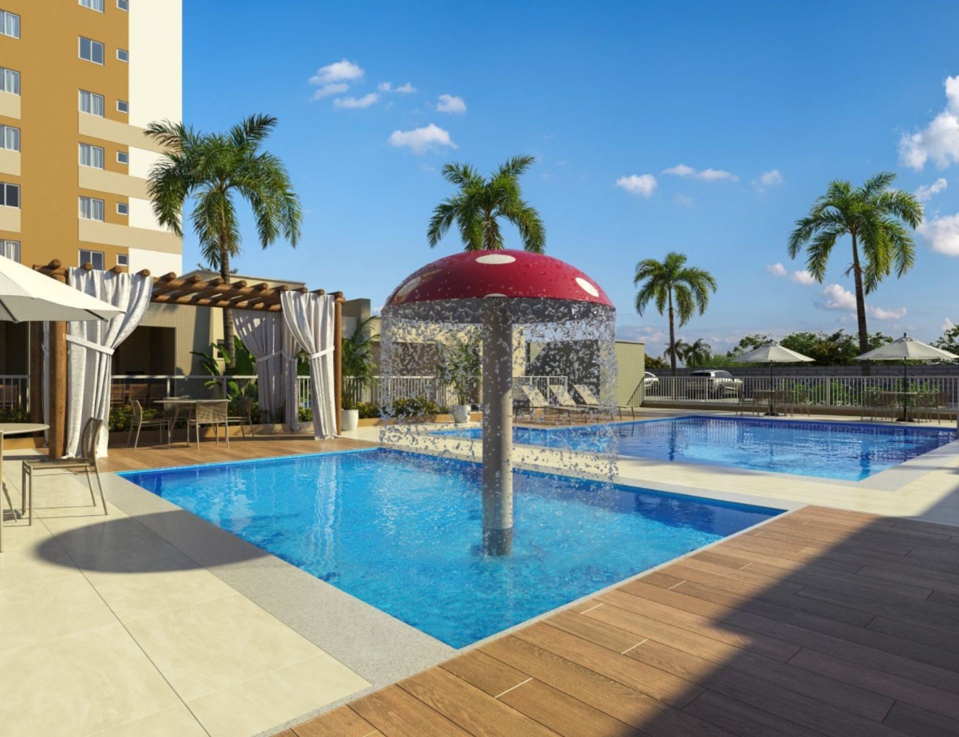 Piscina Adulto com deck molhado.