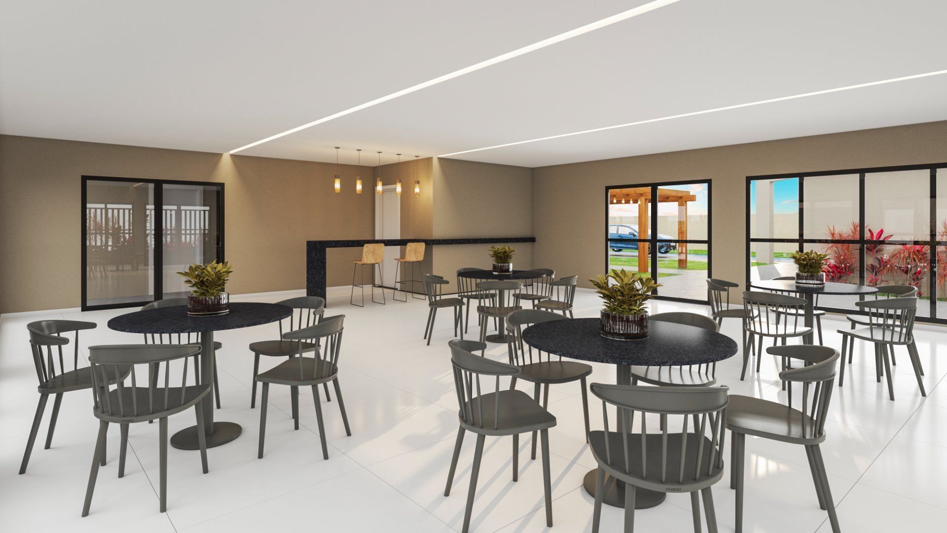 - Salão de Festas climatizado com bar e apoio;