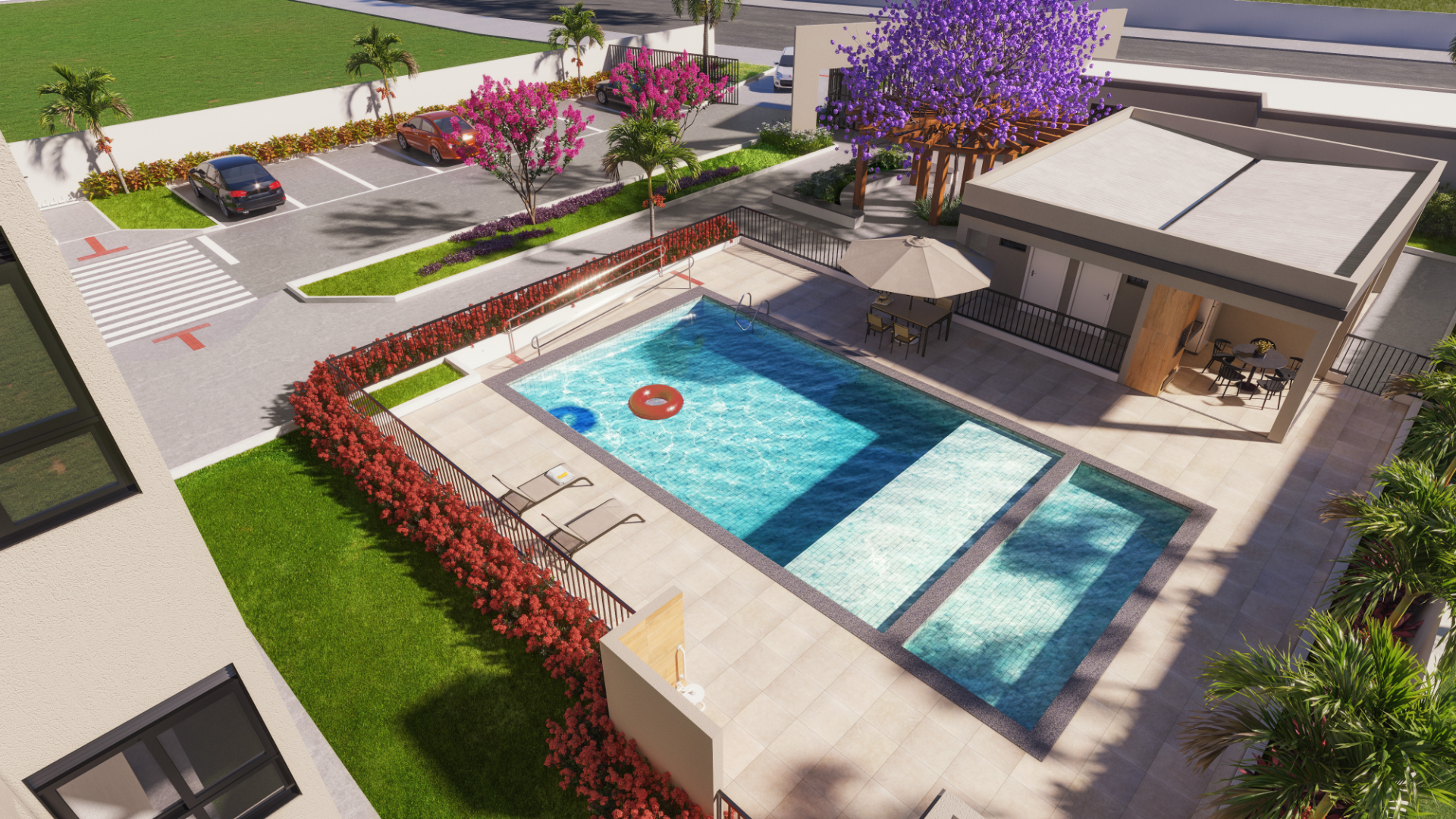 - Vagas Para Visitantes: 12 vagas, sendo 08 vagas internas e 04 vagas externas;